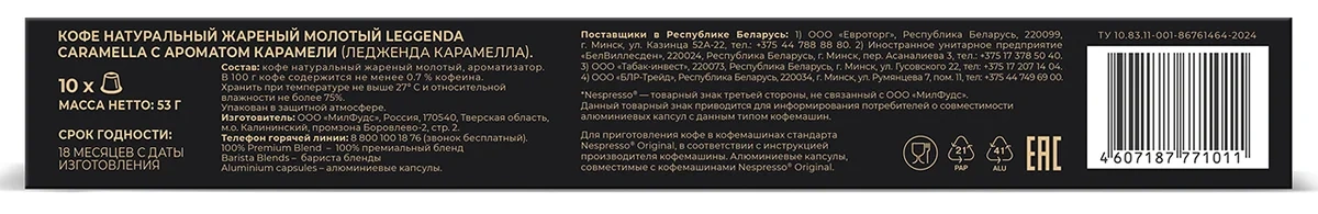 Кофе Poetti Leggenda Caramella в капсулах (5.3г x 10шт), 53г