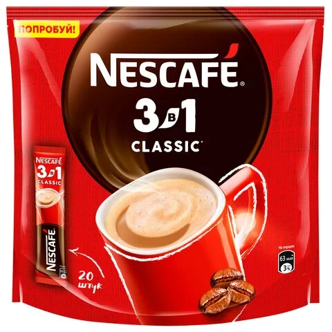 Кофе порционный Nescafe Классик 3в1 20шт х 14.5г, растворимый, пакет