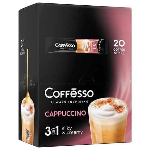 Кофейный напиток COFFESSO 'Кофе растворимый Cappuccino 3 в 1' – 20 пакетиков.