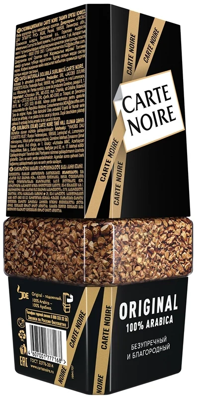 Кофе растворимый Carte Noire Original, 95 г готовится по уникальной технологией обжарки Огонь и Лед, которая способна раскрывать всю интенсивность и богатство кофейного зерна.