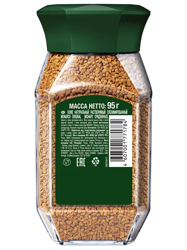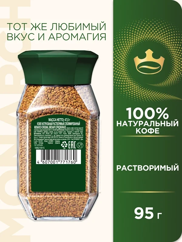 Кофе растворимый Jacobs Monarch 95г, стекло