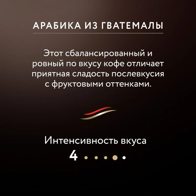 Кофе растворимый сублимированный Jardin Guatemala Atitlan 95 г (стеклянная банка) произведен из 100 % натуральной арабики, выращенной в Гватемале, известной своим климатом и почвами, которые создают идеальные условия для производства кофе с богатыми вкусовыми характеристиками. Этот кофе выделяется сладким послевкусием с фруктовыми оттенками и обладает средней интенсивностью вкуса 4 из 5. Темная степень обжарки подчеркивает его богатый аромат.