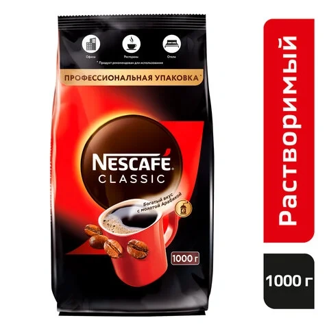 Большой формат упаковки NESCAFÉ Classic особенно удобен для употребления в офисах, ресторанах, отелях и вендинговых аппаратах.