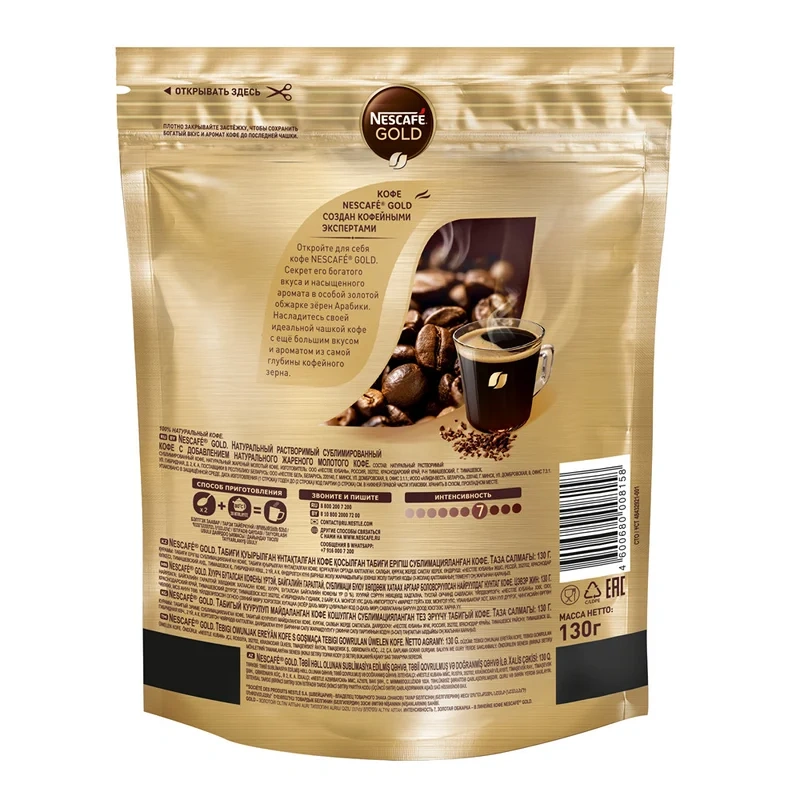 Кофе растворимый Nescafe Gold, 130г, пакет