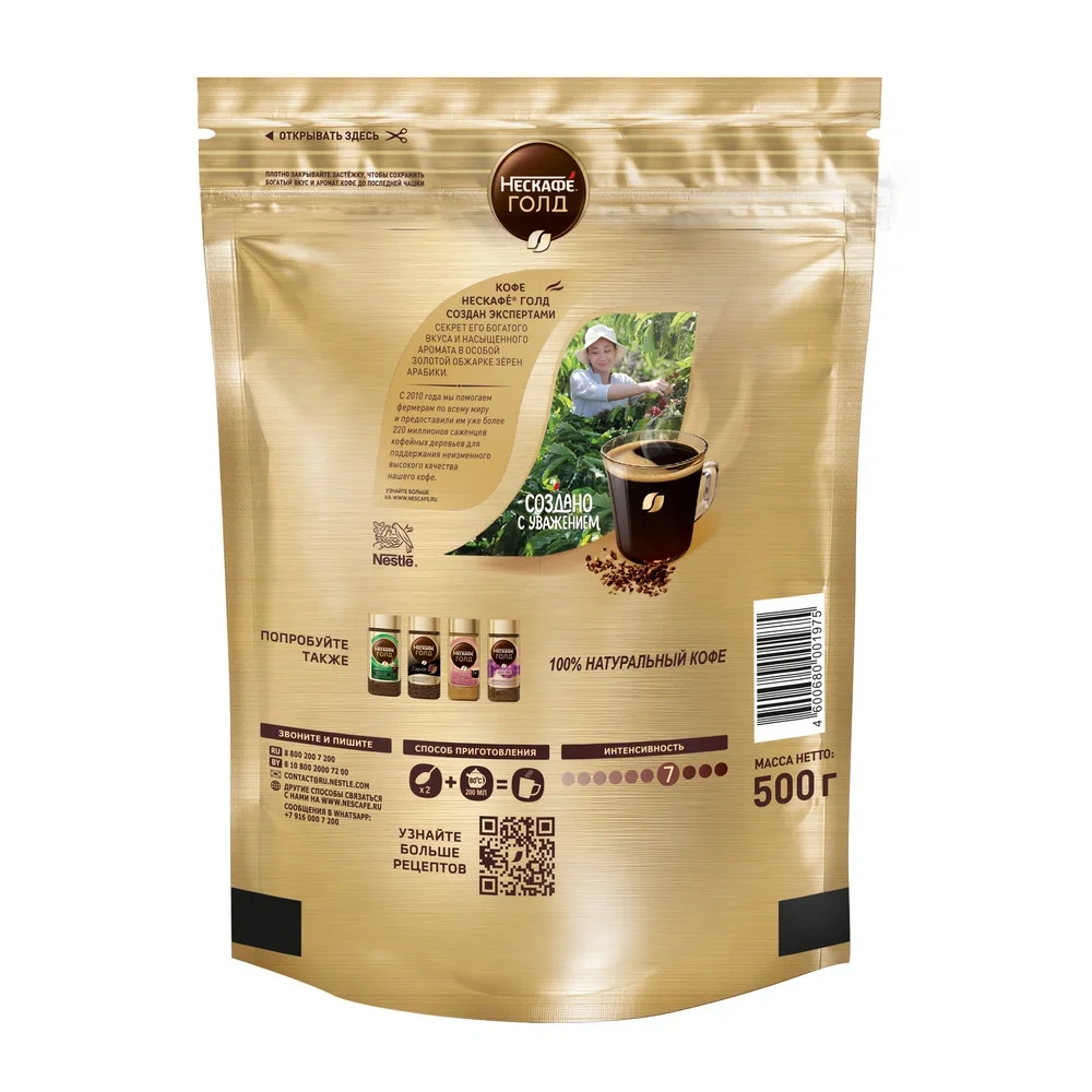 Кофе растворимый Nescafe Gold 500г, с молотым кофе, пакет