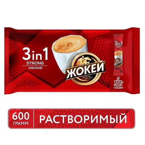Кофе растворимый порционный ЖОКЕЙ '3 в 1 Крепкий', КОМПЛЕКТ 50 пакетиков по 12 г, 1296-08-2