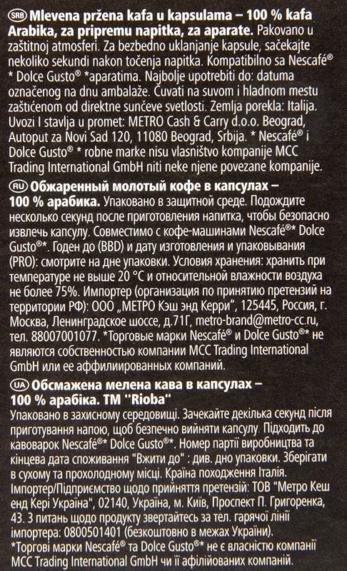 RIOBA Кофе в капсулах Dolce Gusto Espresso 16шт, 112г