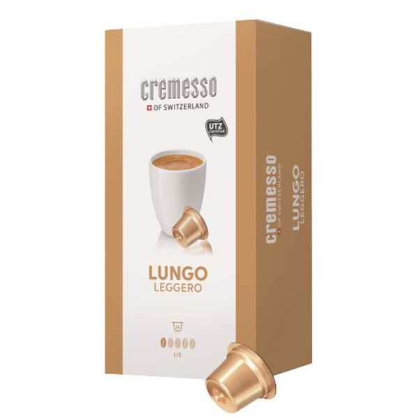 Капсулы для кофемашин Cremesso Leggero - утонченный вариант для гурманов, ценящих в кофе изысканные нотки и нежный аромат. Деликатная обжарка отборных зерен арабики опытными швейцарскими специалистами помогает раскрыть великолепие кофейного букета.