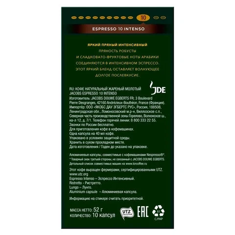 Кофе в капсулах Jacobs Espresso №10 Intenso, 10шт