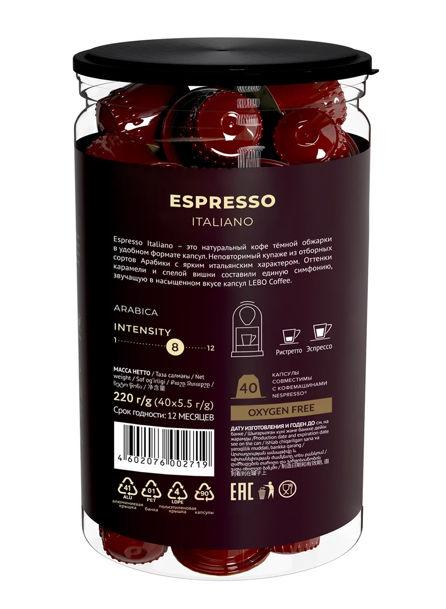 Кофе в капсулах Lebo Espresso Italiano для кофемашин Nespresso 40шт, 220г