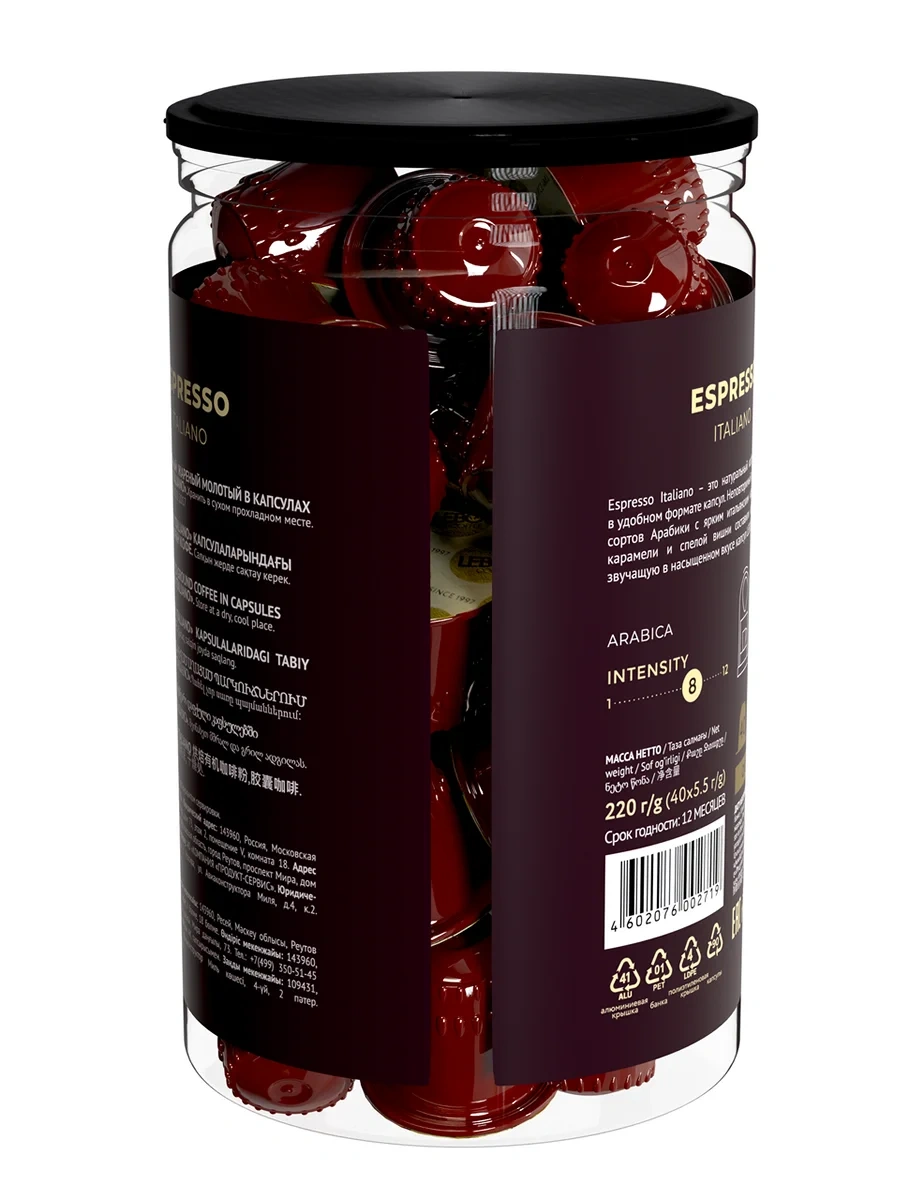 Espresso Italiano – это натуральный кофе тёмной степени обжарки в удобном формате капсул. Неповторимый кофе из отборных сортов Арабики с ярким итальянским характером. Оттенки карамели и спелой вишни составили единую симфонию, звучащую в насыщенном вкусе капсул Lebo Coffee.