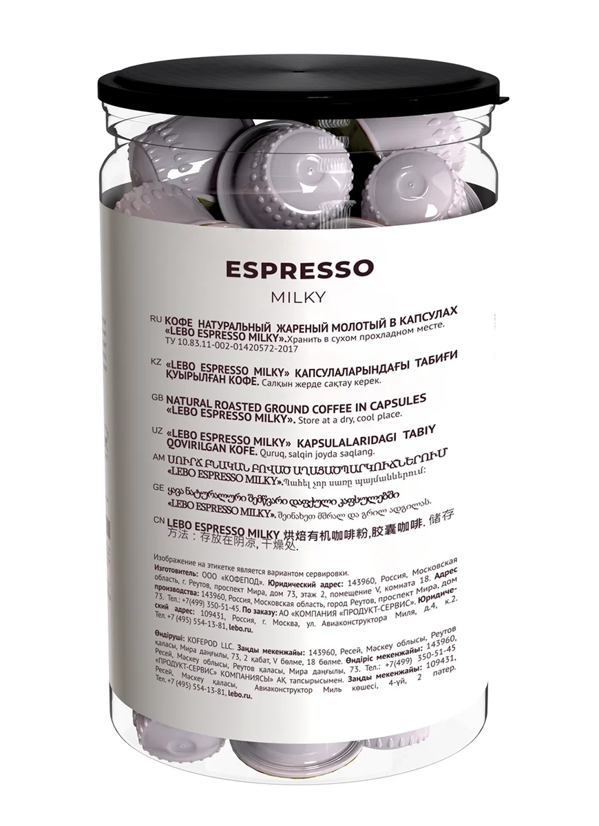 Кофе в капсулах Lebo Espresso Milky для кофемашин Nespresso 40шт, 220г