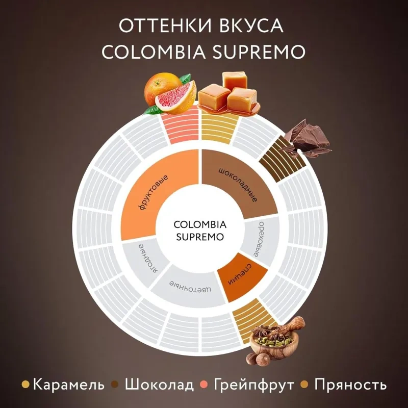 Кофе Jardin Colombia Supremo обладает глубокими нотами вкуса и аромата. Напиток имеет легкий цветочный аромат и ванильное послевкусие. Плотная текстура придает многогранность каждой чашке.