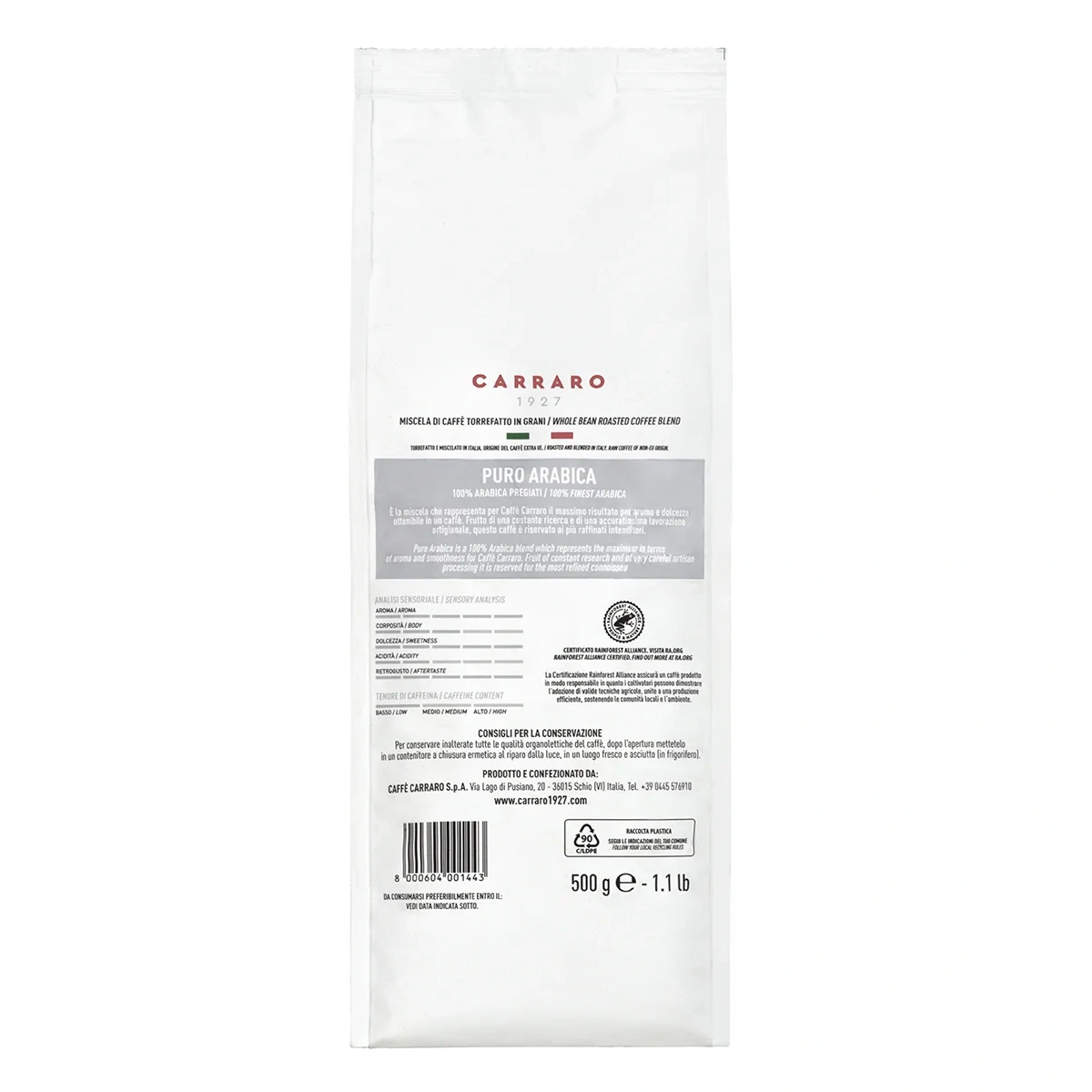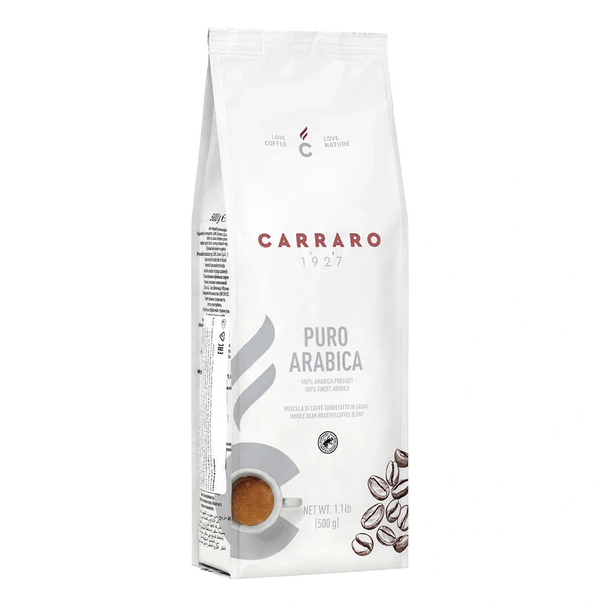 Кофе в зернах Carraro Arabica, 500г