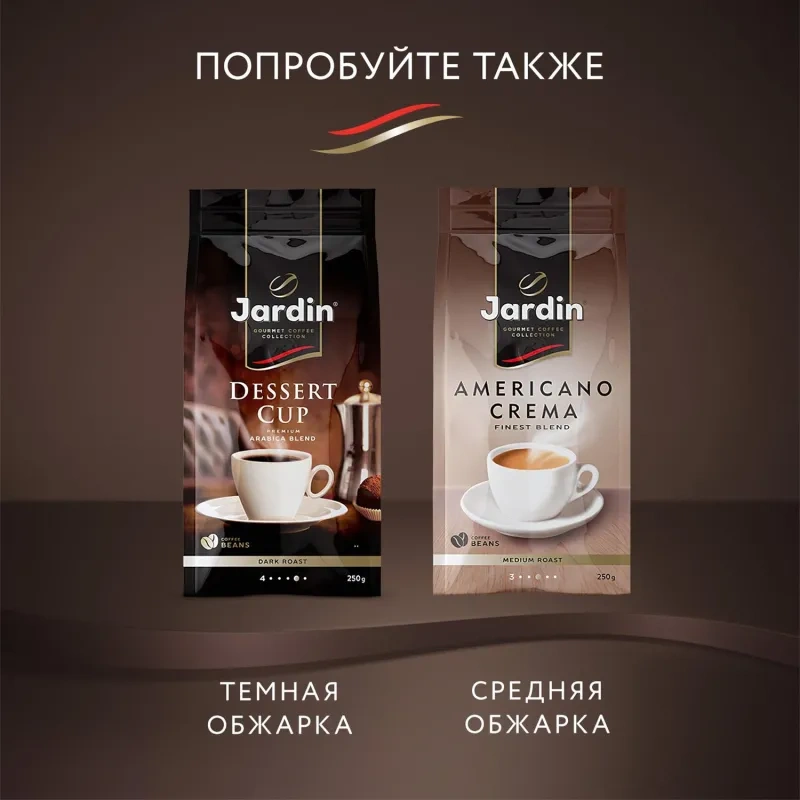 Кофе в зернах Jardin Cafe Eclair — это смесь отборных зерен арабики из Колумбии, Бразилии и Гондураса, предназначенная для приготовления ароматного и тонизирующего напитка. Подходит для использования в турке, кофеварке или кофемашине.