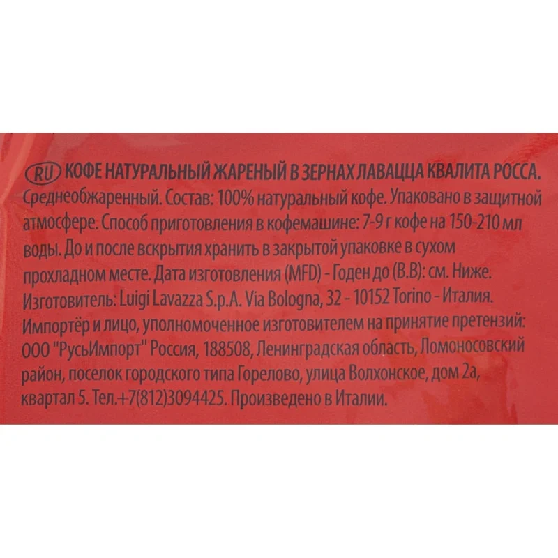 Кофе в зернах Lavazza Rossa 1 кг - натуральный итальянский кофе с крепким вкусом и едва уловимой горчинкой. Несомненным его достоинством также является обильная густая пенка. Lavazza Rossa объединяет в себе сорта лучшей Южноамериканской арабики и высококачественной Африканской робусты средней обжарки. С ним вы сможете добиться приготовления образцового эспрессо, которое удивит ваших гостей приятным сочетанием дерзости и мягкости в одной чашке. Для тех, кто хочет отлично начать день кофе Lavazza Rossa является неотъемлемым ритуалом, благодаря полноценной, богато ароматизированной смеси с насыщенным бархатистым ароматом. Почувствуй себя успешным с чашкой кофе одного из ведущих производителей! Кофе Lavazza Rossa подарит незабываемые впечатления как при классическом варианте приготовления, так и в творческих поисках, так как он позволяет смело разнообразить напиток приправами и добавлениями по вкусу. Кофе в зернах Lavazza Rossa идеален для кофеварки или турки, а также для кофемашины. Яркая упаковка в красно-молочных тонах моментально вызывает желание насладиться ароматным напитком и отлично справляется с сохранением аромата и вкуса кофейных зерен. Состав: 40% арабики, 60% робусты. Степень обжарки: средняя. Вид кофе: зерновой. Способ приготовления: приготовить в кофемашине. Вес: 1000 г. Тип упаковки: вакуумный пакет. Условия хранения: плотно закрытый пакет хранить в сухом прохладном месте. Страна производства: Италия.