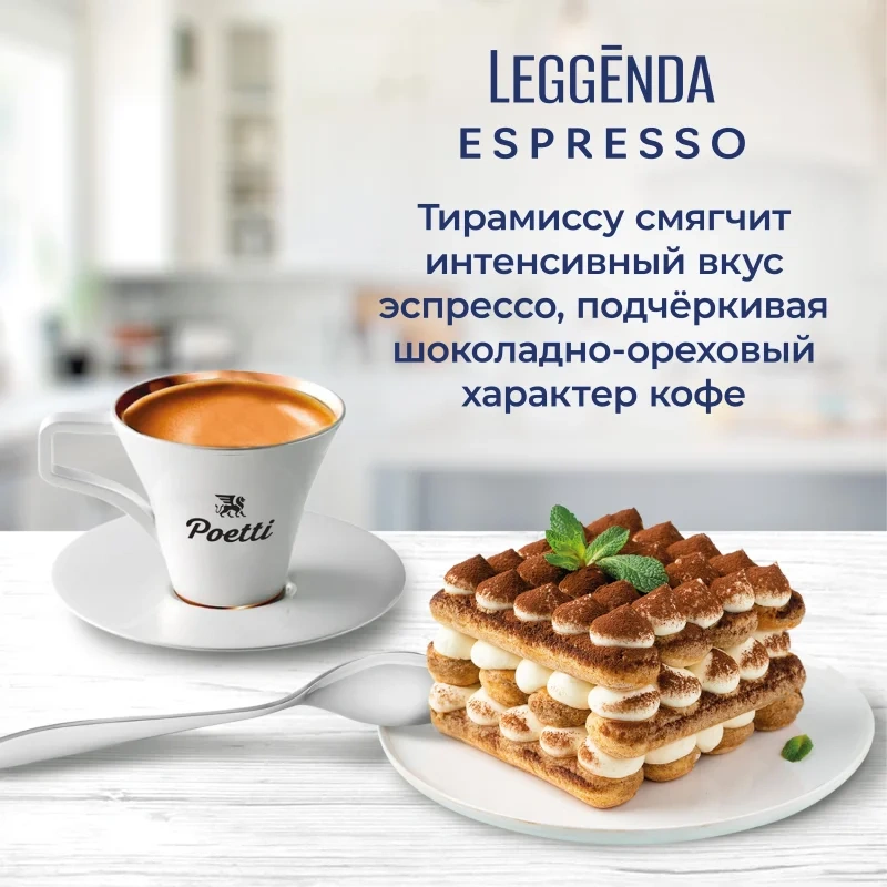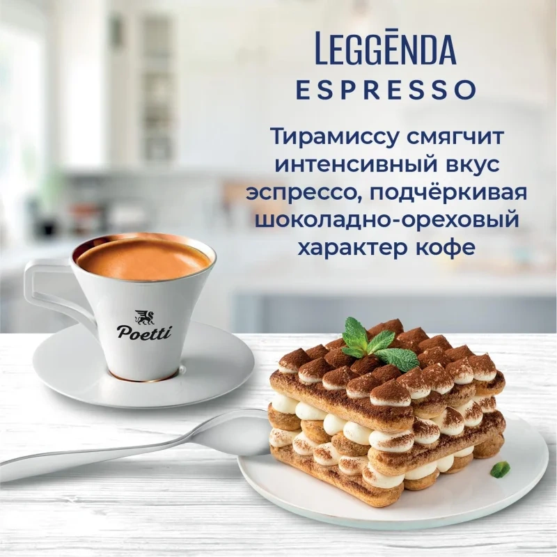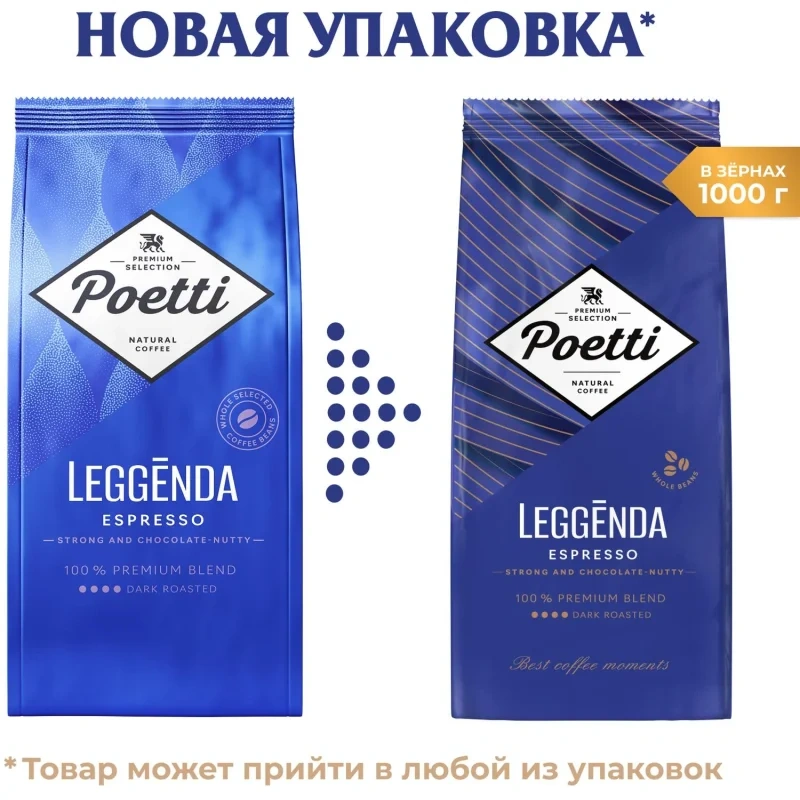 Poetti Leggenda Espresso — это качественный опыт в каждой чашке. Вес упаковки: 1000 г.