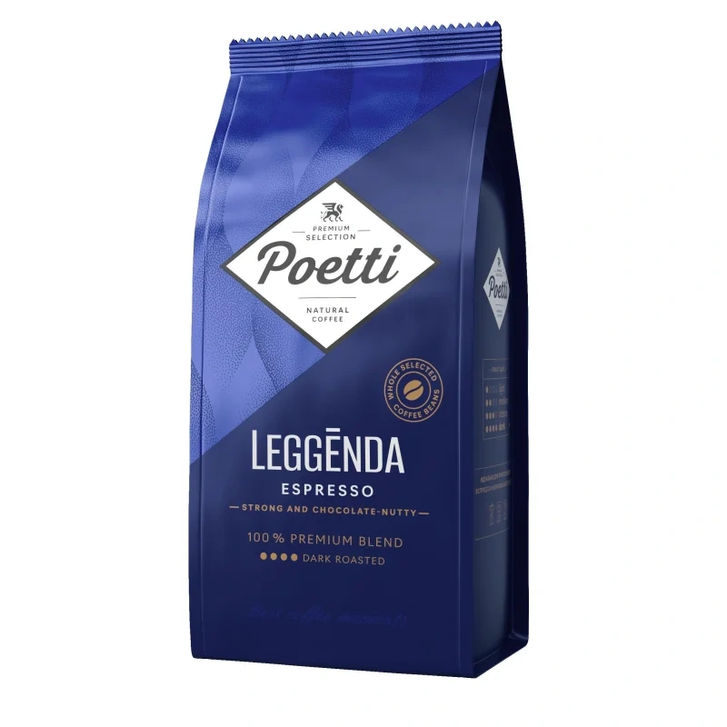 Кофе в зернах Poetti Leggenda Espresso — премиальный натуральный кофе, созданный для ценителей высокого качества и насыщенного вкуса. Он предназначен для приготовления эспрессо и напитков на его основе в автоматических и рожковых кофемашинах, а также для заваривания в гейзерной кофеварке, турке, френч-прессе, в зависимости от степени помола.