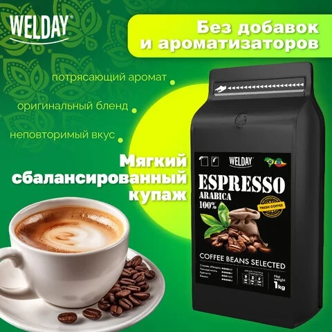 Кофе в зернах Welday Espresso Arabica, арабика 100%, 1кг