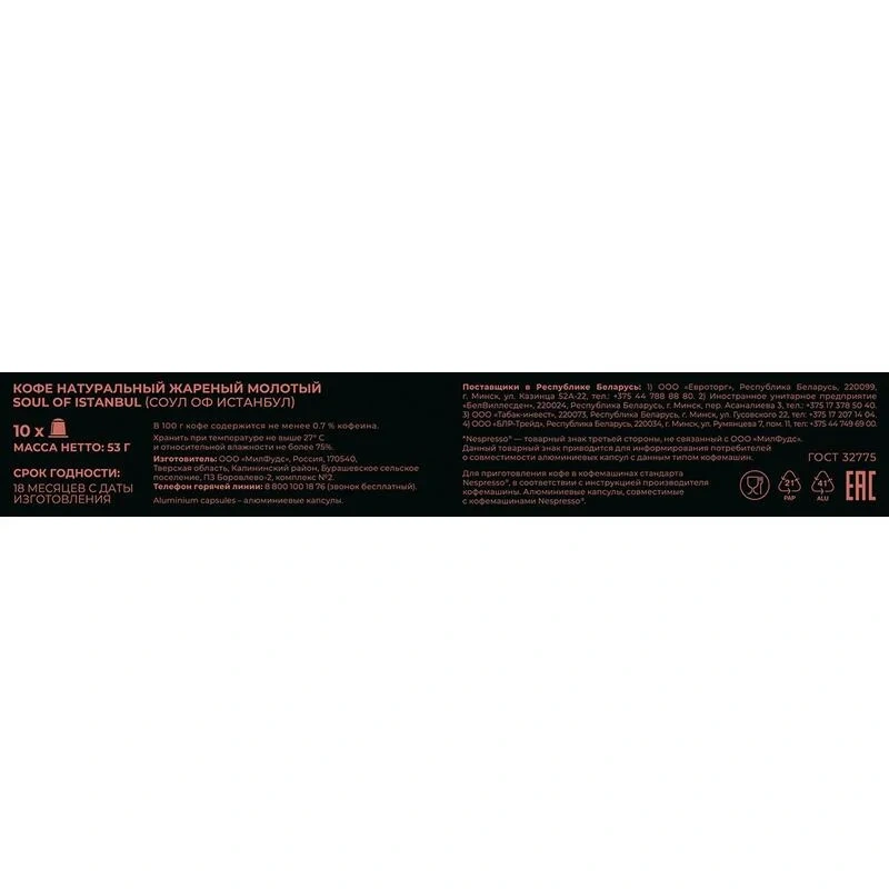 Кофе Poetti Soul of Istanbul в капсулах (5.3г x 10шт), 53г
