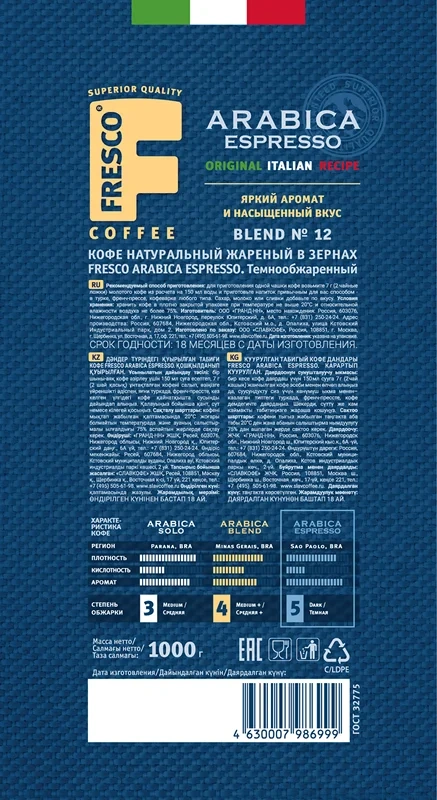 Кофе в зернах Fresco Arabica Espresso, арабика 100%, 1кг