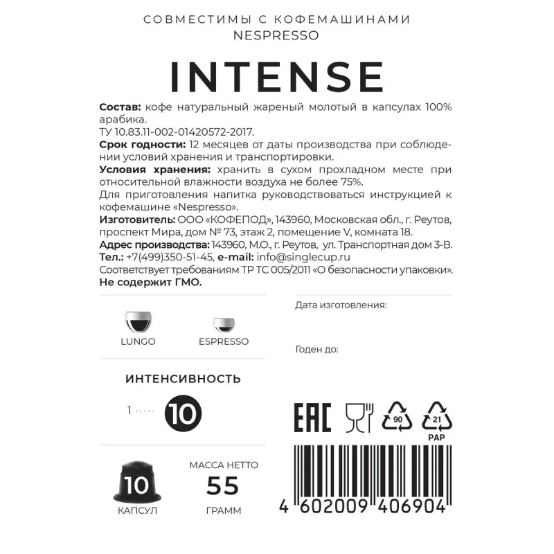 Кофе в капсулах Lebo Toffee Caramel c аром. карамели, 10кап/уп
