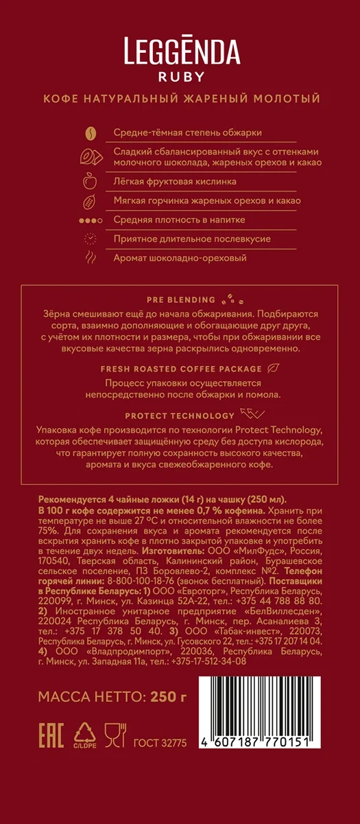 Кофе молотый Poetti Leggenda Ruby, 250г