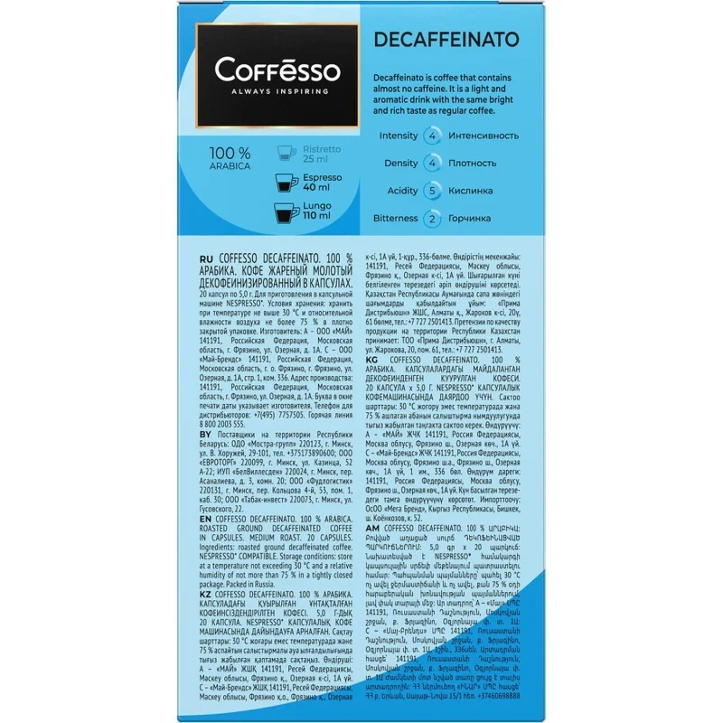 Кофе в капсулах Coffesso Decaffeinato, 20шт, без кофеина