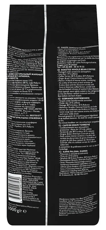 Кофе в зернах Piazza Del Caffe Extra Grande, 800г, пачка