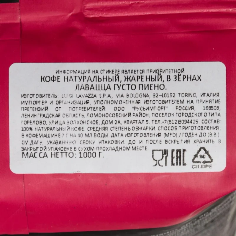 Кофе в зернах Lavazza Expert Gusto Pieno, 1кг, пачка
