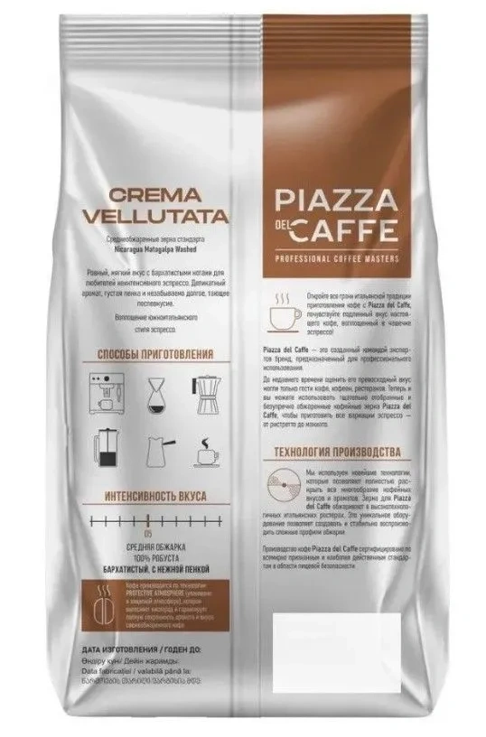Кофе в зернах Piazza Del Caffe Crema Vellutata 900г, пачка