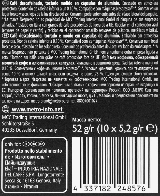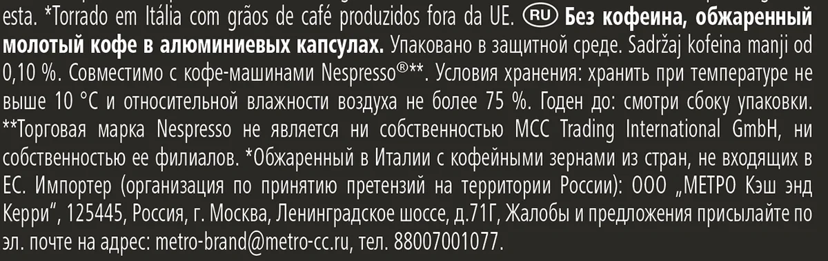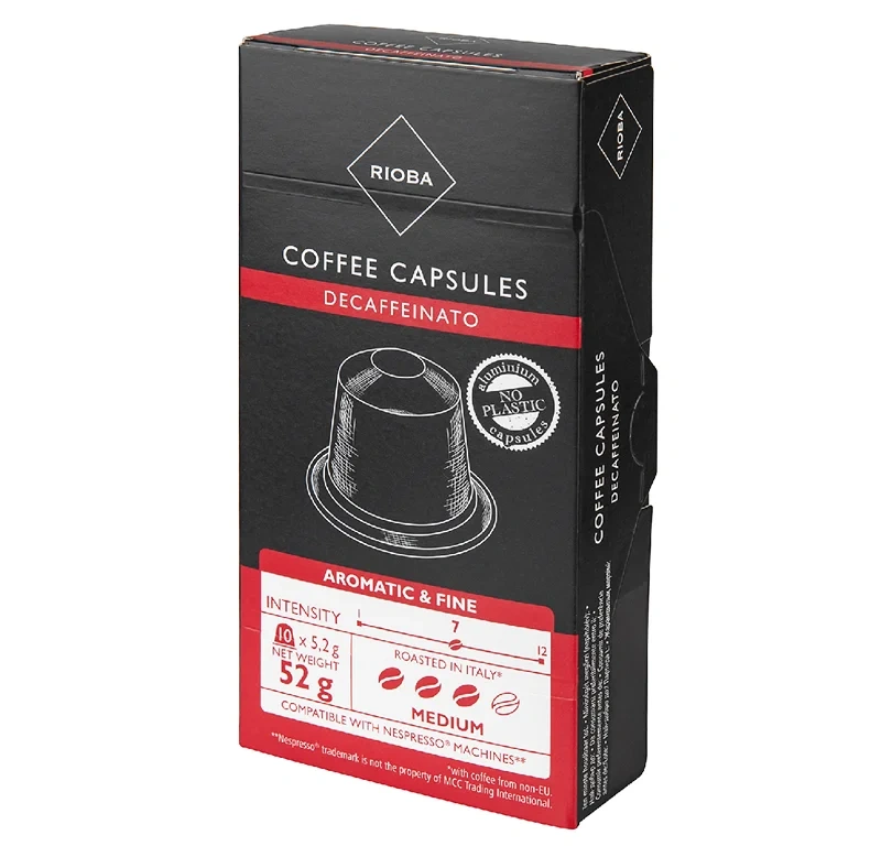 RIOBA Кофе в капсулах Decaff без кофеина для кофемашин Nespresso 10шт, 52г