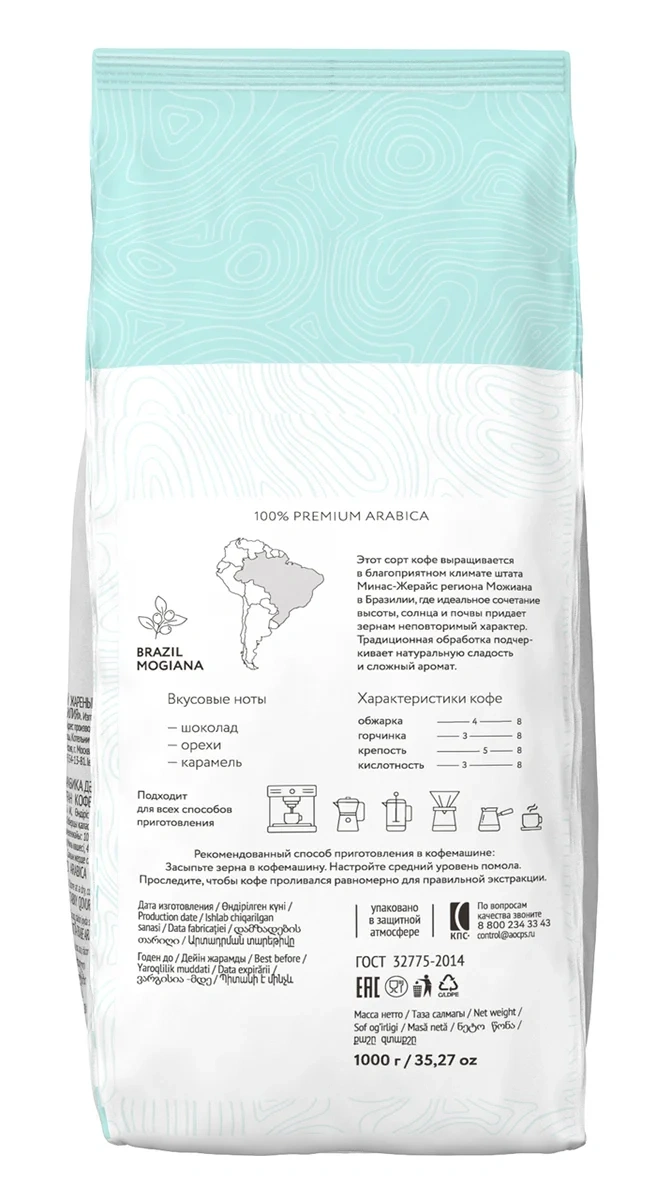 Кофе Lebo Brazil Mogiana зерновой, 1кг