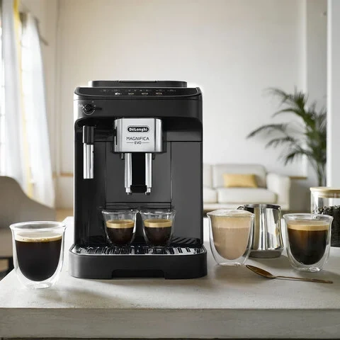 Наслаждайтесь незабываемыми впечатлениями от кофе с DELONGHI Magnifica Evo. Приготовьте идеальный эспрессо из свежемолотых зерен по одному из 4 рецептов, доступных одним касанием.
