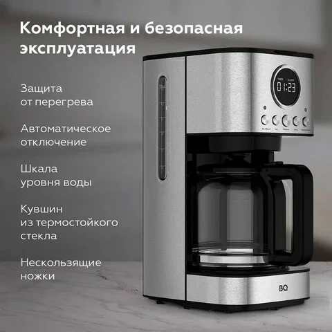 Кофеварка капельная BQ (БИ-КЬЮ) CM1007, 900 Вт, объем 1,5 л, поддержание температуры, серебристая, 8