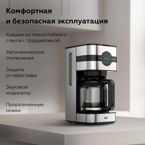 Кофеварка капельная BQ (БИ-КЬЮ) CM2002, 900 Вт, объем 1,5 л, поддержание температуры, серебристая, 8
