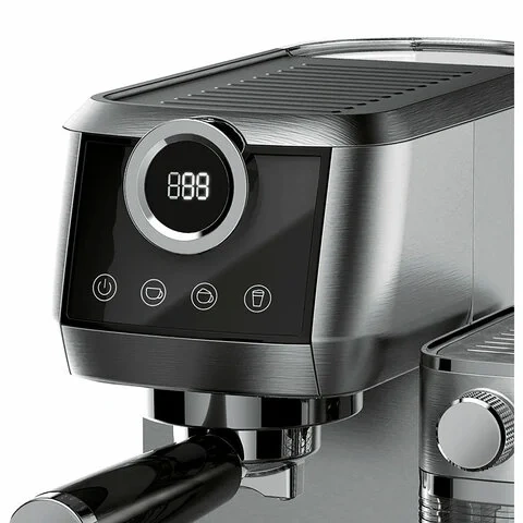 Сенсорная панель управления удобна и интуитивно понятна, предлагая кнопки для эспрессо, двойного эспрессо и различных размеров чашек капучино или латте.