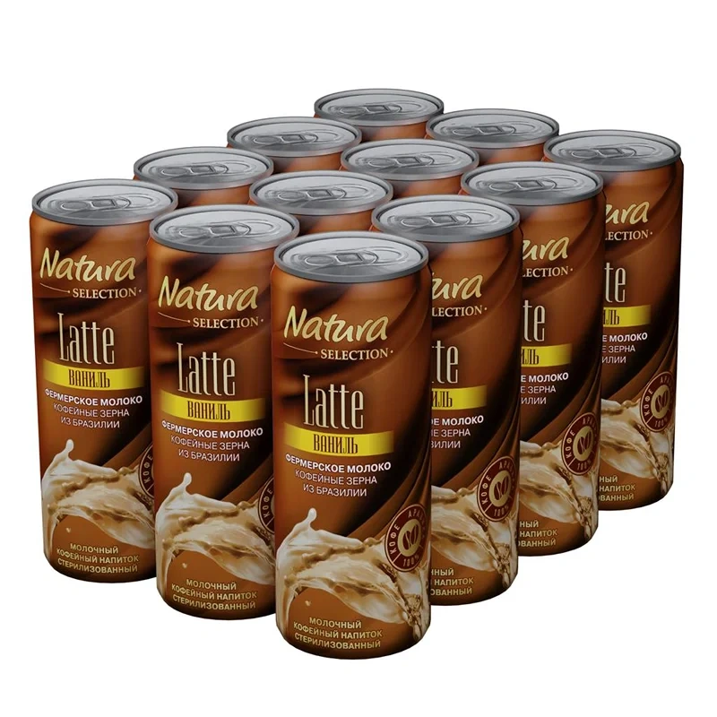 Напиток молочно-кофейный Natura selection Latte Ваниль, 220 мл (без заменителя молочного жира) – это любимый многими кофе с ярким ванильным вкусом и нежным сливочным ароматом. Чтобы насладиться его вкусом, не нужно посещать кофейню, искать автомат или готовить самостоятельно. Все уже готово и продумано. Выпускается латте в стильной оригинальной упаковке. Это оценят любители походов и путешествий, длительных прогулок и пикников. Напиток на основе кофе прекрасно взбодрит утром, в дневное время поддержит в тонусе и придаст сил для дальнейшей работы, а вечером поможет снять усталость. Латте разливается в практичную алюминиевую банку, которую удобно взять с собой в дорогу и на пикник.