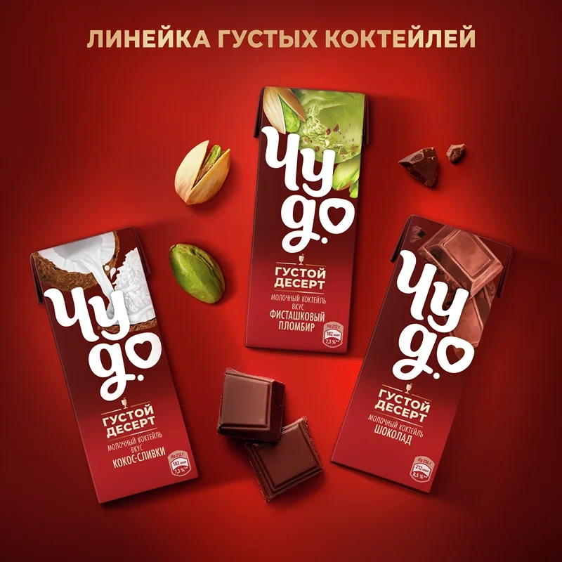 Бренд Чудо более 20 лет создает вкусные молочные продукты и десерты из отборных ингредиентов. В ассортимент входят питьевые йогурты, молочные коктейли, пудинги, глазированные сырки, творожки и йогурты с насыпками. Среди разнообразия вкусов и текстур каждый член семьи обязательно найдет что-то по своему вкусу.