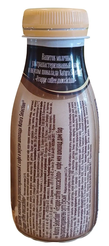 Молоко нормализованное, молоко восстановленное В, сахар, загуститель – Е407 X или Е407а Е, тапиоковый крахмал Т, загуститель – модифицированный крахмал Н, стабилизатор – гуаровая камедь R, ароматизаторы.