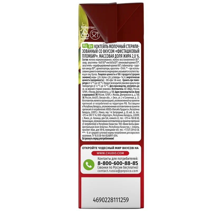 Молочный коктейль Чудо со вкусом кокоса и сливок изготовлен из натурального молока без добавления консервантов. Напиток удобно брать с собой для вкусного перекуса в течение дня. Густой десерт способен удовлетворить вкусовые предпочтения всей семьи.