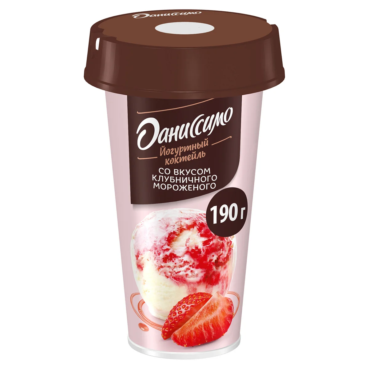 Коктейль йогуртный Даниссимо со вкусом клубничного мороженого 2.6%, 190г