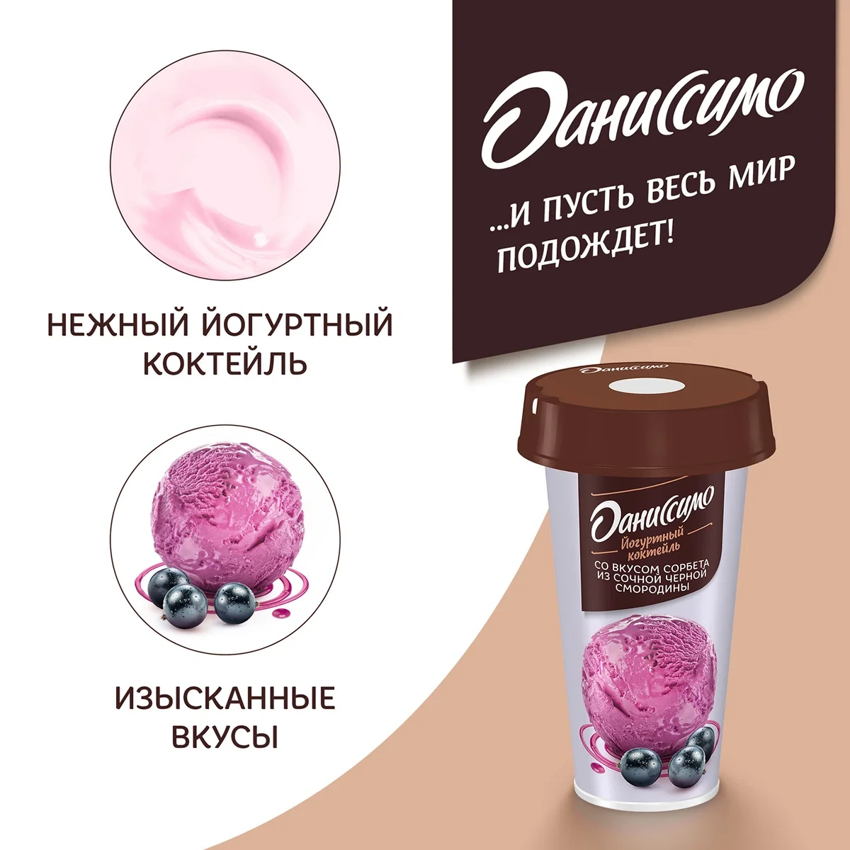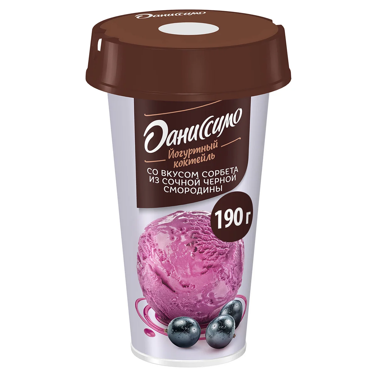 Коктейль йогуртный Даниссимо со вкусом сорбета из черной смородины, 190г