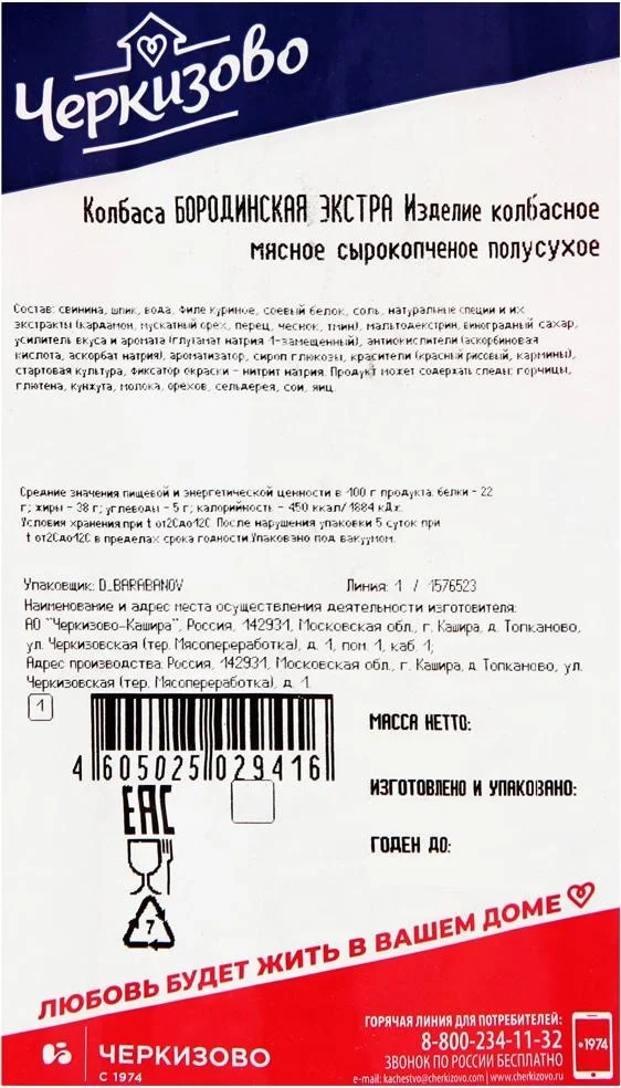 Колбаса Черкизово бородинская экстра сырокопченая, 200г
