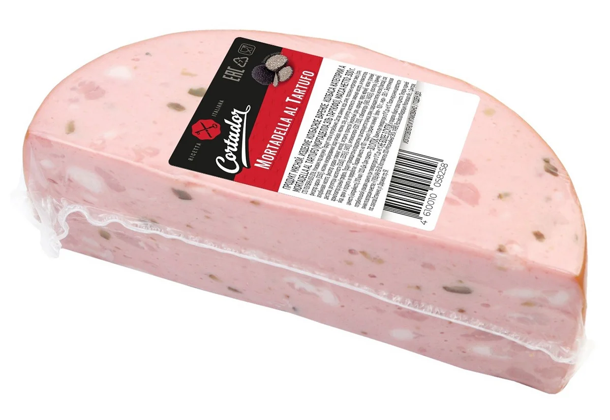 Колбаса вареная Cortador Мортаделла эль Тартюфо, нарезка изготовлена из свинины с добавлением кусочков шпика, что придает продукту эластичность и неповторимый нежный вкус. Натуральное копчение на буковой щепе обогащает вкус продукта. Продукт может выступить и как отдельный деликатес, достаточно нарезать ее на тонкие ломтики и подавать со столовой горчицей, а можно приготовить завтрак для ваших близких. В любом случае, этот продукт не оставит равнодушным никого.