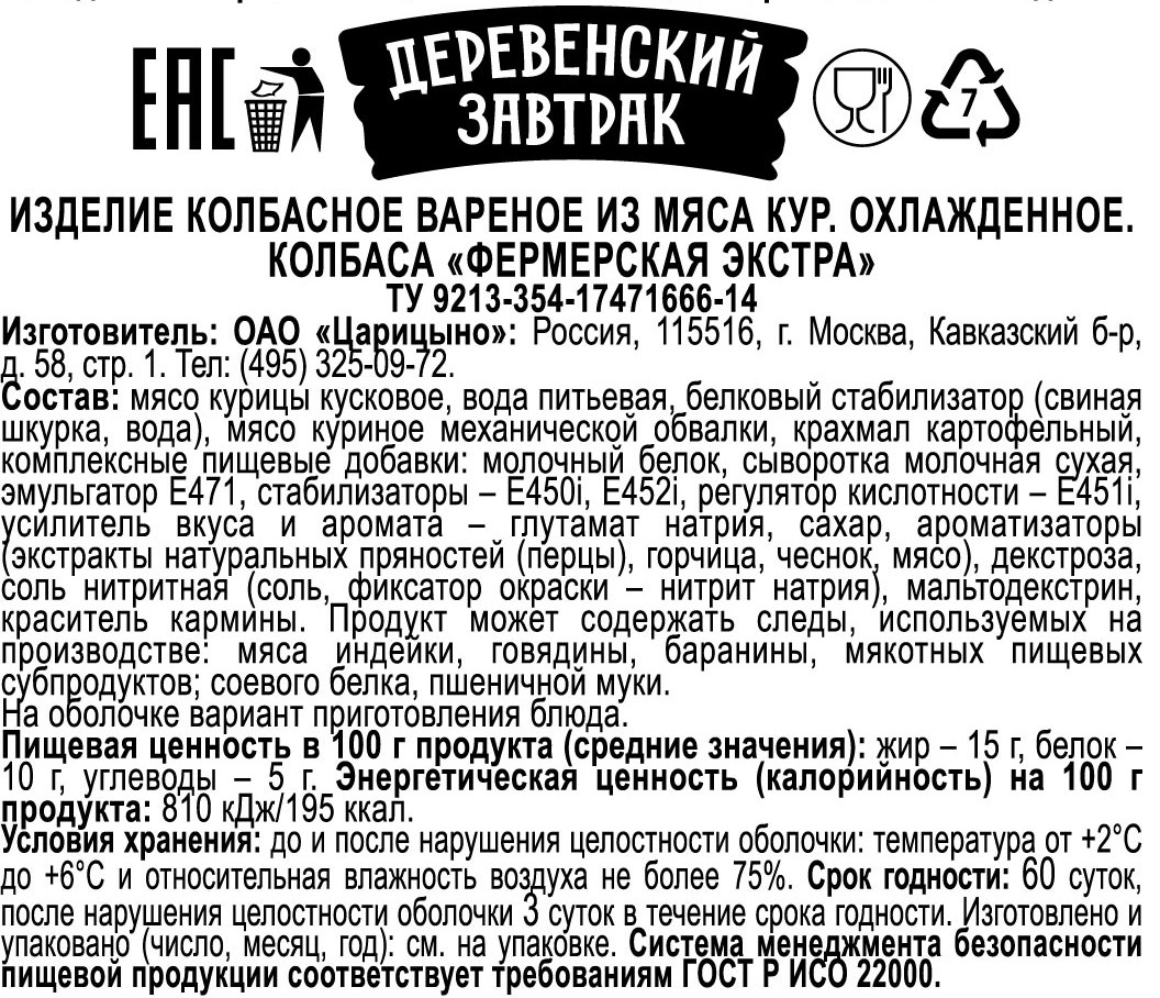 | Бренд | деревенский завтрак |