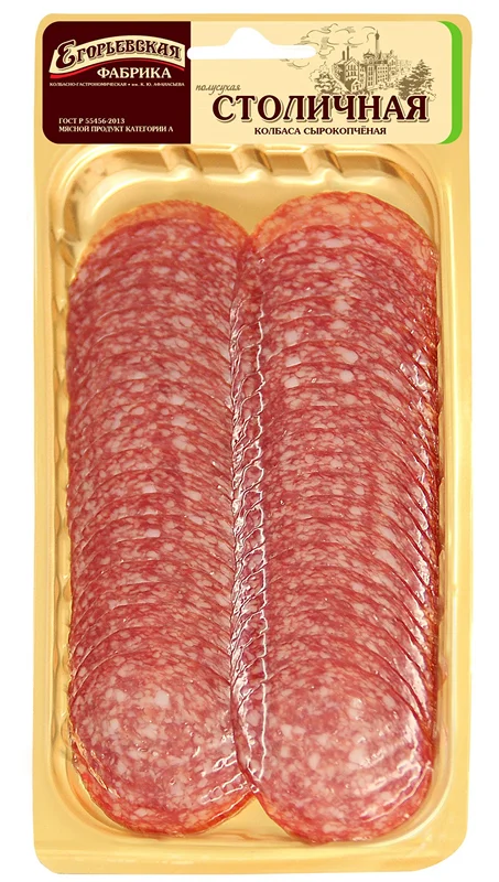 Колбаса Егорьевская фабрика Столичная сырокопченая нарезка, 100г