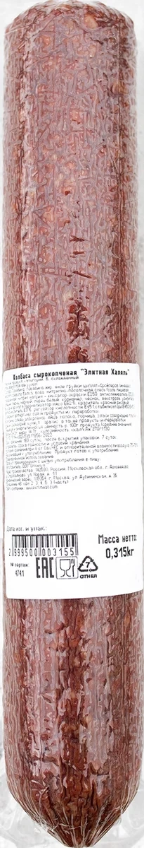 Колбаса Эколь Элитная сырокопченая халяль, ~400г сделана из двух видов фермерского мяса — говядины и птицы. Белоснежный шпик аппетитно смотрится на срезе, а букет пряностей придает продукту выразительный вкус и тонкий аромат. Колбаса легко нарезается на тонкие слайсы, кубики нужного размера. Ее подают как закуску в составе мясной тарелки к прохладительным и горячим напиткам. Продукт используют для приготовления бутербродов и сэндвичей к завтраку или перекусу. Он отлично сочетается со всевозможными гарнирами, овощами, салатами, хлебом и соусами. Благодаря высокой энергетической ценности деликатес легко справляется с чувством голода, придает сил и повышает работоспособность. Продукт заключен в натуральную оболочку, которая сохраняет его свежесть, вкусо-ароматические свойства в течение всего срока годности. На этикетке производитель разместил информацию о дате выпуска, температуре хранения, составе, а также маркировку халяль, которая подтверждает соответствие деликатеса требованиям религии к содержанию и убою птицы и скота.