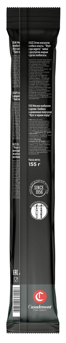 Колбаса фуэт Casademont в черном перце сыровяленая, 155г