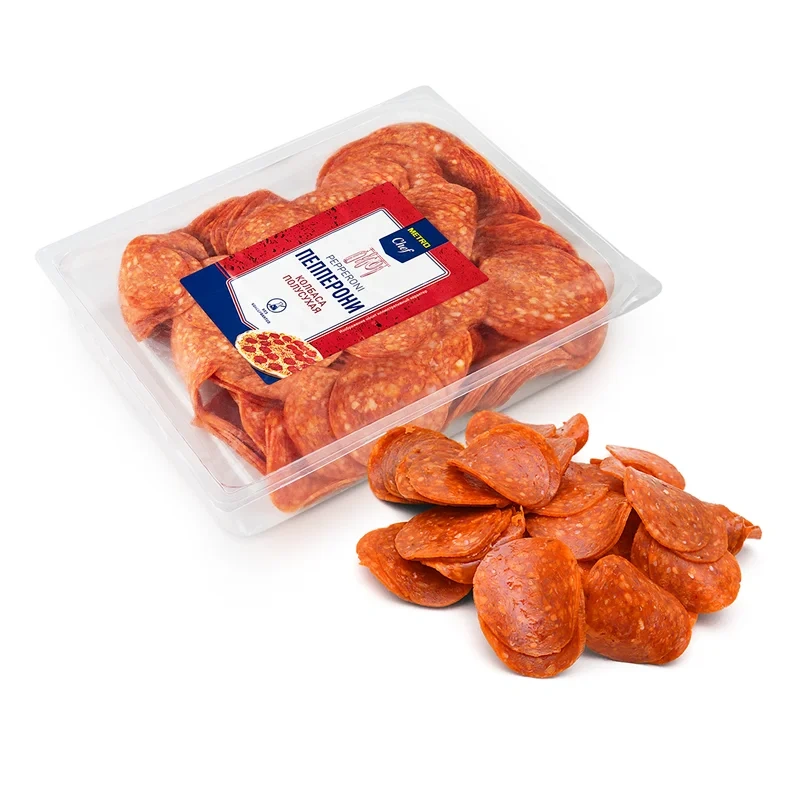 Пепперони Metro Chef Нарезка Сырокопченая, 500г – деликатес, изготовленный из натурального отборного сырья. Используемая технология производства позволяет максимально сохранить пользу натурального мяса, а также отменный вкус и аромат мясного изделия. Смелое сочетание натуральных специй и различных трав добавляет колбасе пикантность. Рестораторы особо ценят этот продукт, ведь он изгота??ливается по традиционным итальянским рецептам.